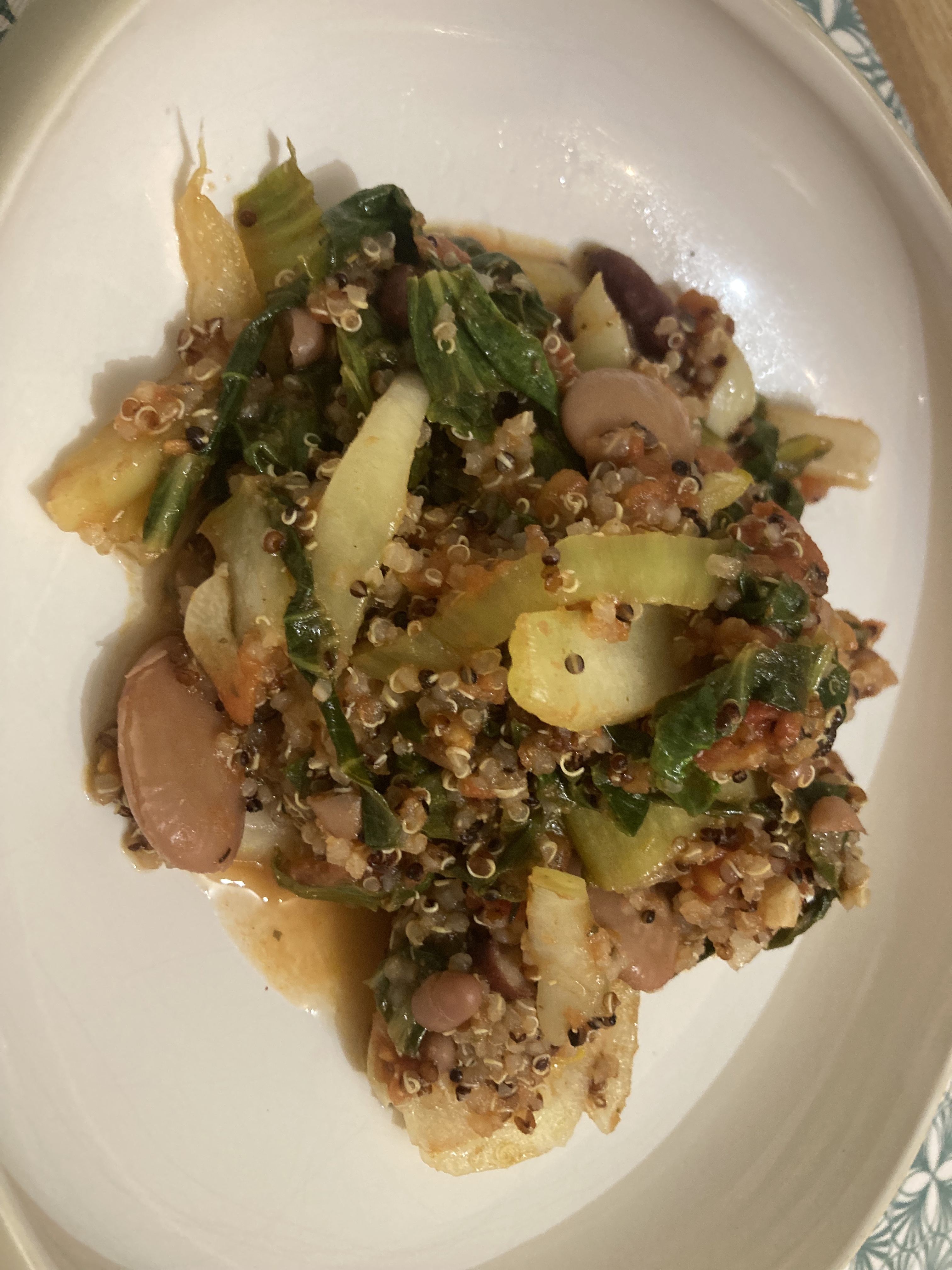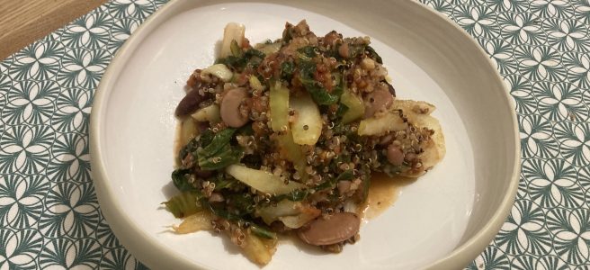 Une recette bien réconfortante à base de quinoa, chou Pak Choï et d’un mix de légumes secs.